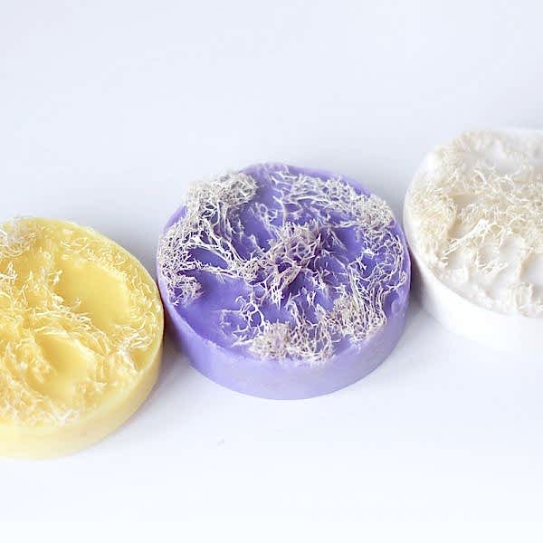 Круглое мыло с мочалкой из люфы
